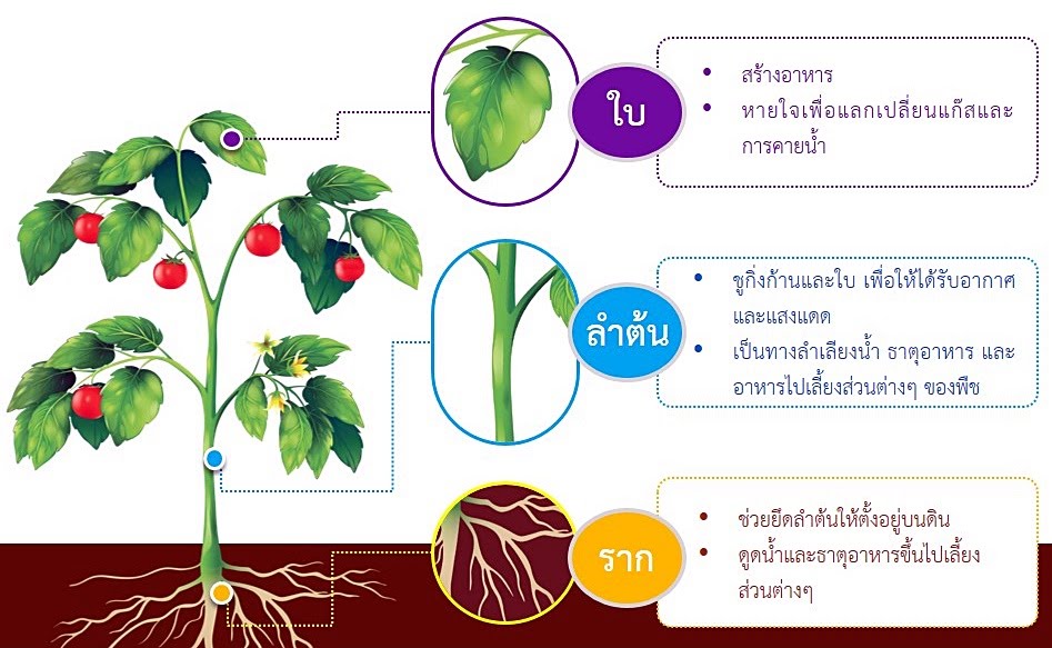 พืชประกอบด้วยอวัยวะที่สำคัญต่อการดำรงชีวิต ได้แก่ ราก ลำต้น ใบ ดอก ผล และเมล็ด ซึ่งอวัยวะแต่ละส่วนของพืชนั้นมีหน้าที่และส่วนประกอบแตกต่างกัน แต่ทำงานเกี่ยวข้องและสัมพันธ์กันหากขาดอวัยวะส่วนใดส่วนหนึ่งไป อาจทำให้พืชนั้นผิดปกติหรือตายได้ และยังมีปัจจัยบางประการที่จำเป็นต่อการเจริญเติบโตของพืช